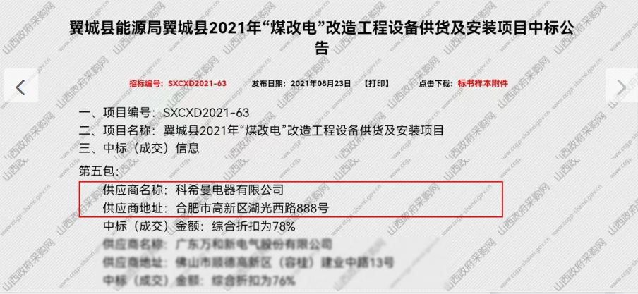 近日,山西省清潔取暖前線傳來(lái)中標(biāo)喜訊,科希曼成功中標(biāo)翼城縣2021“煤改電”改造工程設(shè)備供貨及安裝項(xiàng)目,為當(dāng)?shù)鼐用裉峁┛諝饽軣岜卯a(chǎn)品,減少大氣污染,推動(dòng)清潔取暖可持續(xù)發(fā)展。