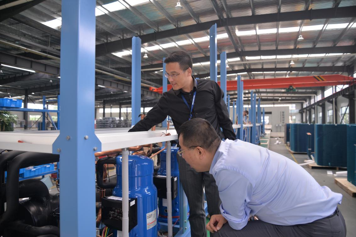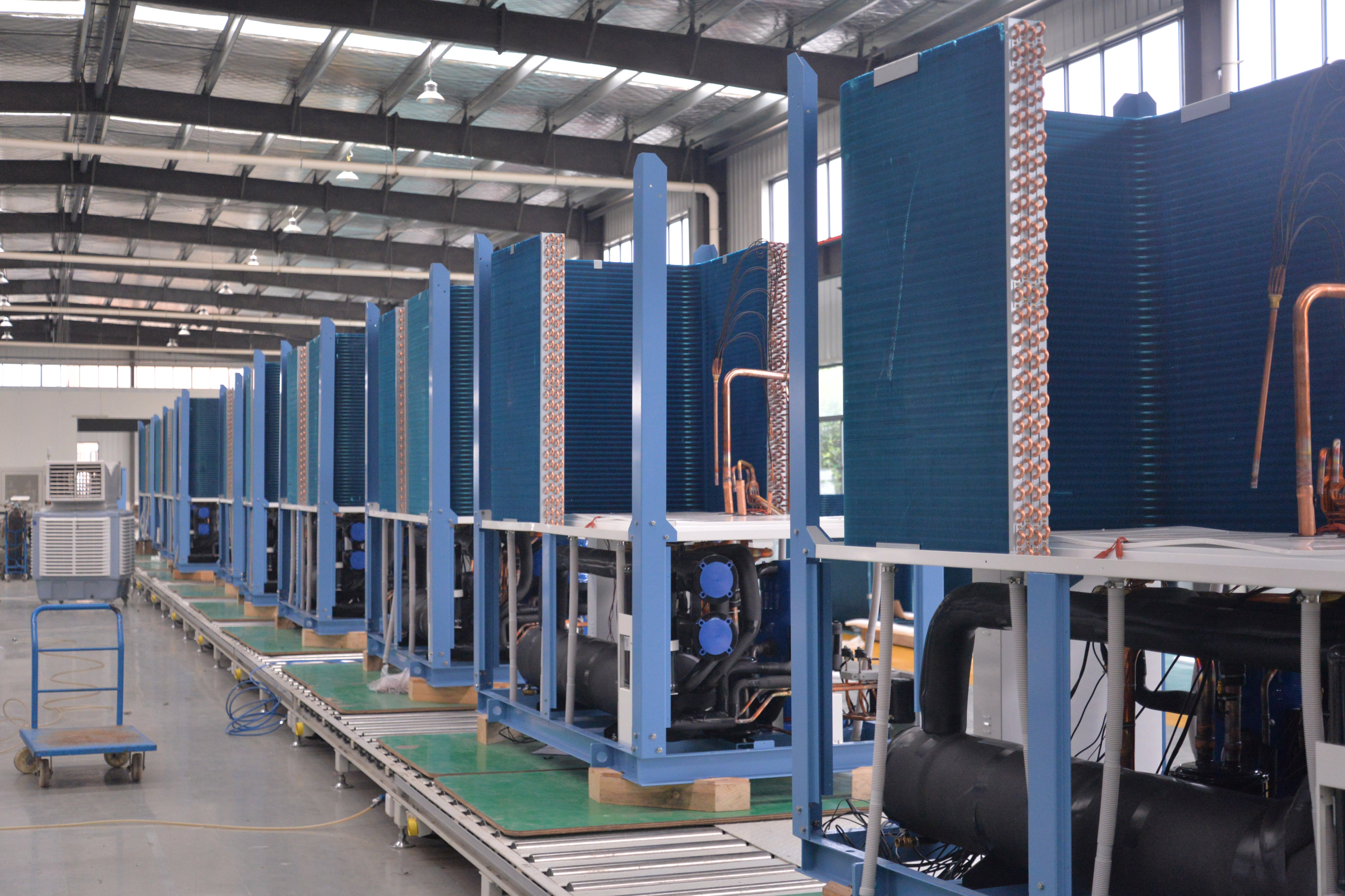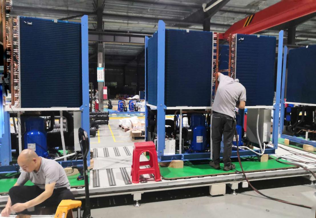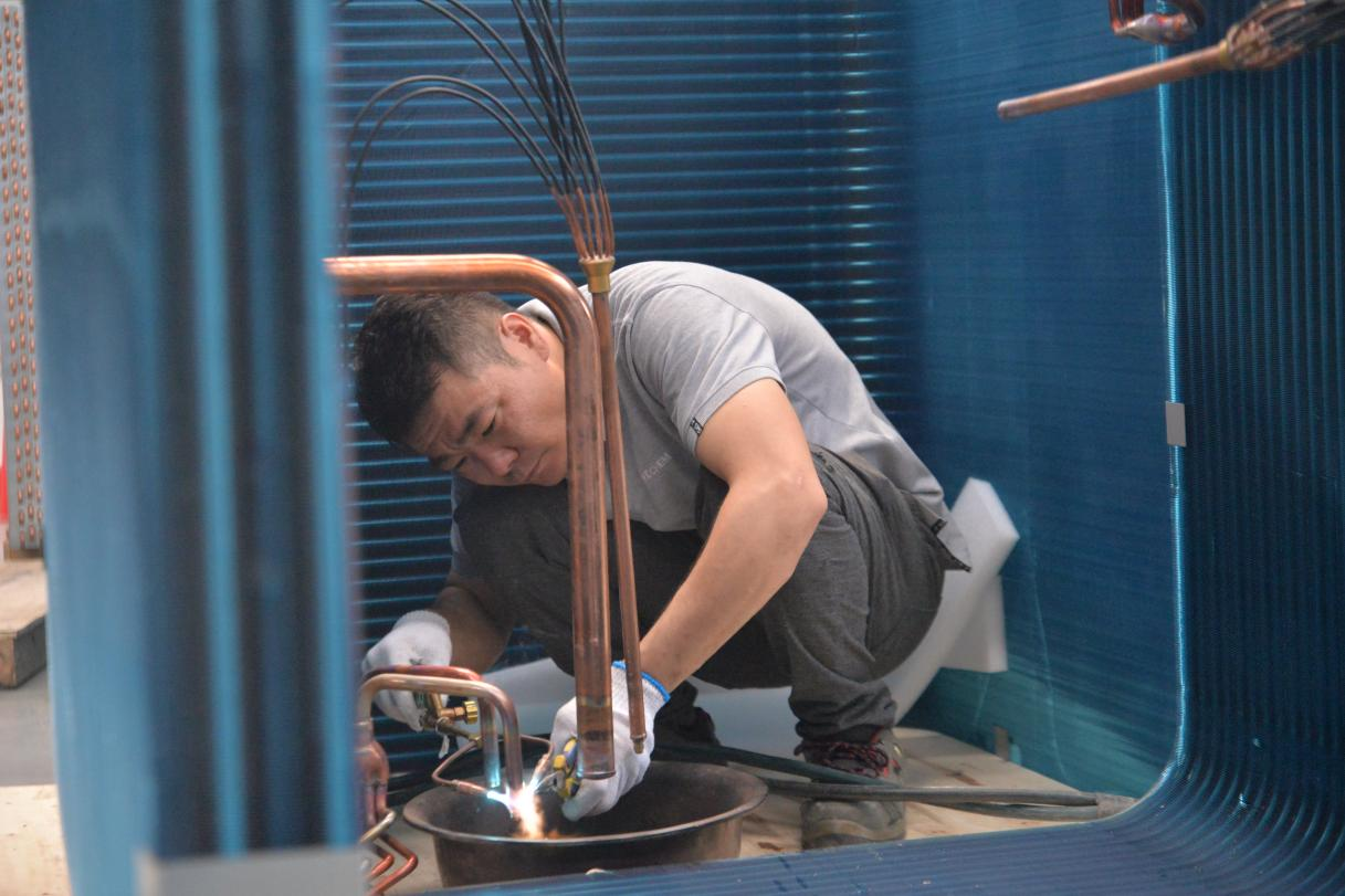 除了通過(guò)各部門團(tuán)結(jié)協(xié)作及各員工加班加點(diǎn)提升進(jìn)度,科希曼還升級(jí)生產(chǎn)設(shè)備,改變傳統(tǒng)的人工和叉車安裝蒸發(fā)器方式,使用行吊,配置專業(yè)夾具,實(shí)現(xiàn)蒸發(fā)器自動(dòng)化安裝,有效提高生產(chǎn)效率。
