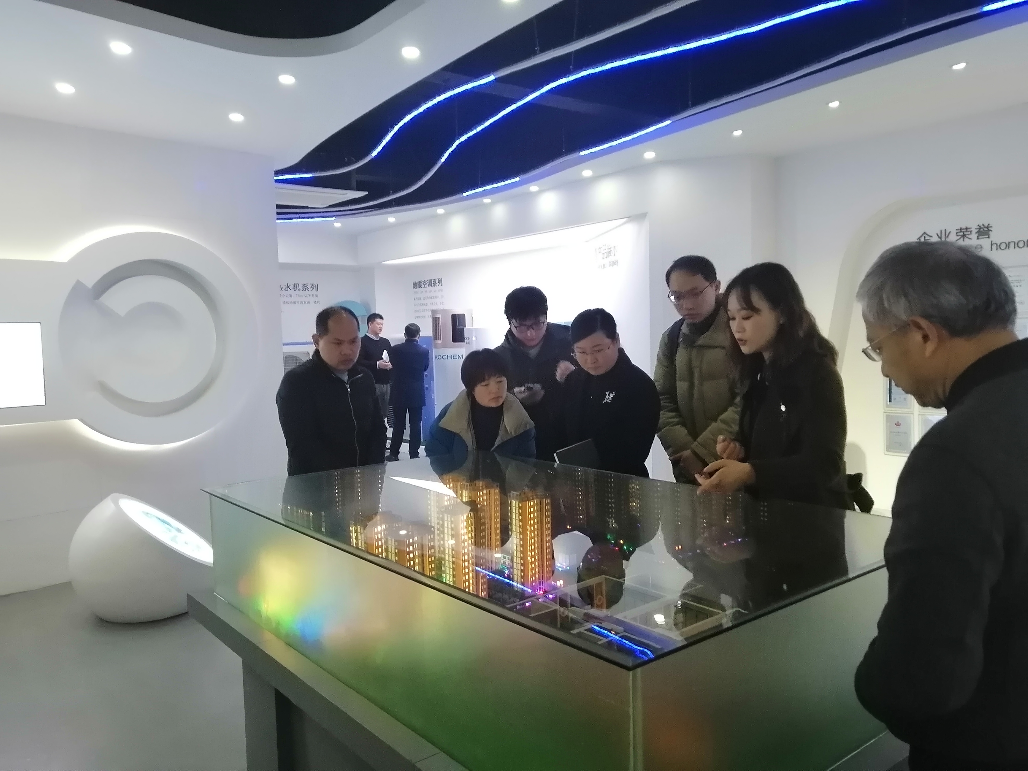 科希曼黨委書記楊世軍和大客戶負責人程磊等人帶領眾人參觀了公司展廳。先從公司宣傳片切入,講述我們的核心空氣源熱泵技術,接著向來賓介紹了科希曼的發(fā)展歷程及公司成就,還重點介紹了幾款科希曼的熱門產(chǎn)品。
