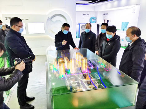 科希曼黨支部書記楊世軍代表科希曼電器有限公司對到訪領(lǐng)導進行了熱情接待。蜀山區(qū)委書記王海霞領(lǐng)導一行參觀了公司展廳。模擬沙盤前楊書記繪聲繪色講解了科希曼空氣源熱泵在馨鉆界小區(qū)的運行基本原理與取得的巨大成果,獲得了區(qū)領(lǐng)導們的高度贊許。
