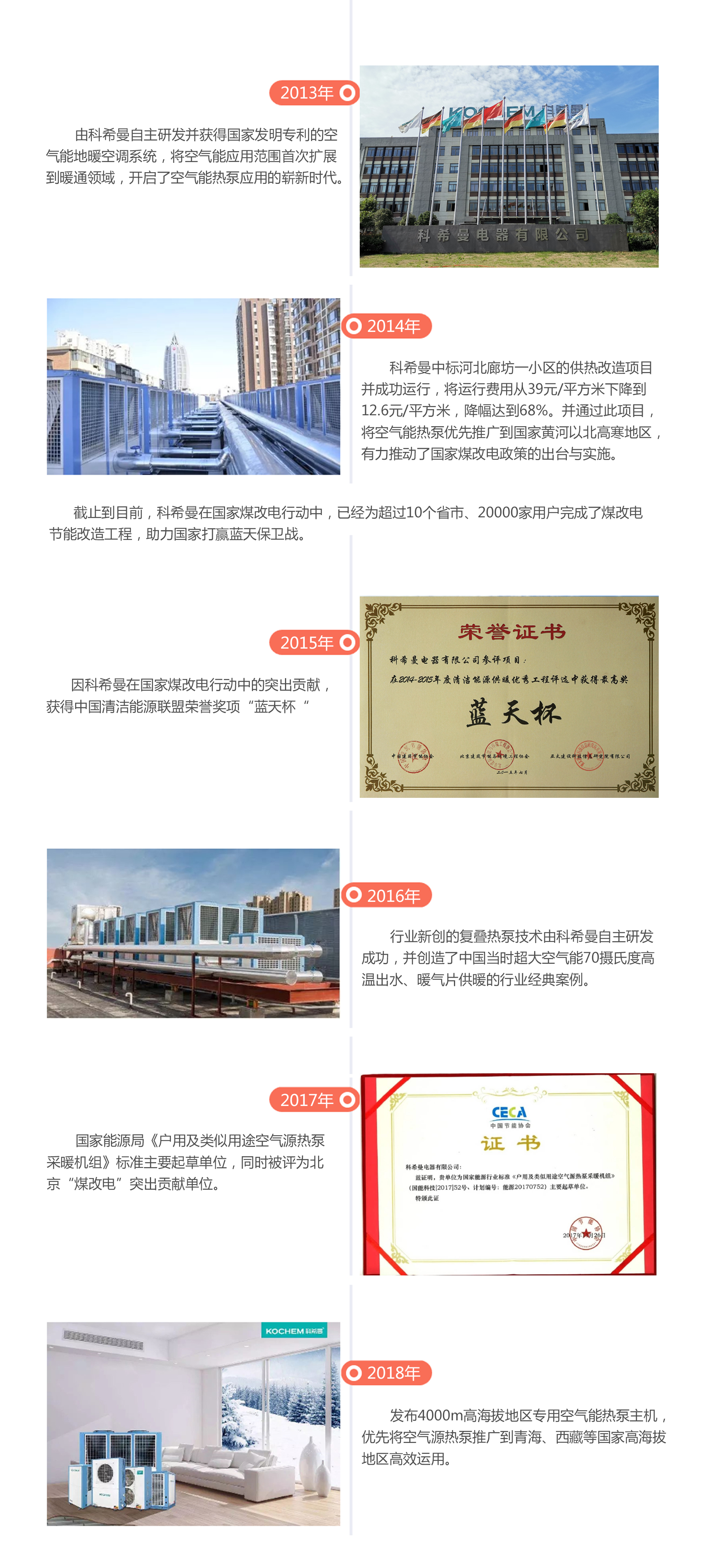 科希曼電器有限公司是我國一家專注于空氣能熱泵新能源產(chǎn)品技術研發(fā)、生產(chǎn)、銷售、服務于一體的國家高新技術企業(yè)。主筆起草國家能源局《戶用及類似用途空氣源熱泵采暖機組》行業(yè)標準,先后榮獲諸如“煤改清潔能源突出貢獻單位”、空氣能行業(yè)十大知名品牌 、全國空氣能熱泵行業(yè)質(zhì)量領先品牌 、中國節(jié)能環(huán)保專利獎、中國清潔能源聯(lián)盟--"藍天杯"等眾多榮譽。