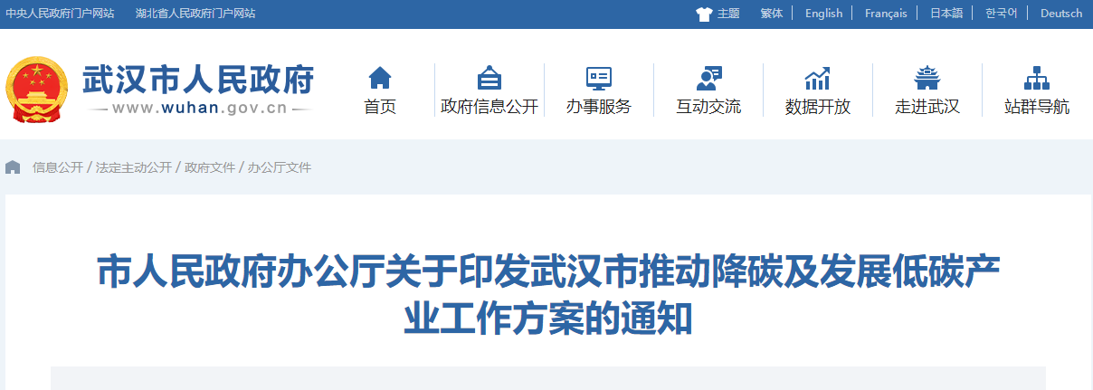 武漢市推動降碳及發(fā)展低碳產(chǎn)業(yè)工作方案